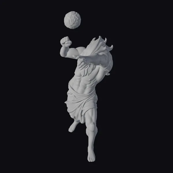 In a pose that exudes raw power and divine wrath, a muscular male figure, reminiscent of Zeus, is captured in mid-action, launching a lightning bolt into the air. The intricate details of his physique are accentuated by the dynamic folds of his white toga, which appears to be blown back by an invisible force. The texture of the toga and the defined muscles convey a sense of realism, drawing the viewer into a moment of high drama. The lightning bolt, textured with a rugged, stone-like pattern, seems to hover in anticipation of its target. This 3D model is perfect for projects requiring a touch of mythology and epic storytelling, such as animations, games, or architectural visualizations. Its realistic style ensures it will add depth and authenticity to any scene.