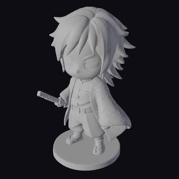 Standing poised with one foot slightly forward, this stylized anime figurine exudes a sense of readiness, as if anticipating the next move in a battle. His black hair is styled in a spiky fashion, framing his determined expression. The detailed textures of his clothing, from the buttons on his shirt to the wrapped hilt of his sword, showcase a high level of craftsmanship. The figurine’s base provides stability, allowing it to stand proudly on any surface. Ideal for fans of anime and collectors of 3D models, this figurine can bring a touch of fantasy and adventure to games, animations, or virtual reality experiences.