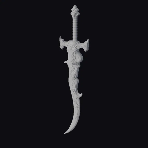 Detailed with precision, this anime-style fantasy sword boasts a uniquely curved blade with a sharp, menacing edge and an ornate crossguard. The red handle provides a striking contrast to the metallic sheen of the sword, accentuated by a decorative element near the hilt. The sword’s design is reminiscent of mythical tales, making it a perfect addition to any fantasy or sci-fi project. Ideal for game developers, animators, and designers looking for a distinctive weapon to enhance their narratives.