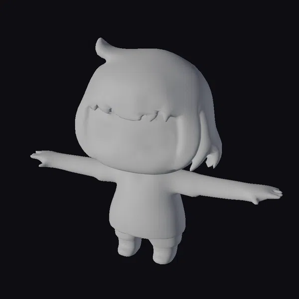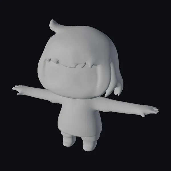 Detailed with a focus on simplicity, this chibi anime girl model features a short, light-colored hairstyle and expressive brown eyes. She wears a plain white outfit that highlights her cute and playful demeanor. The model is posed with arms outstretched, suggesting a range of motion for animation or posing. Ideal for use in animations, games, or as a base for your own character designs, this model offers a versatile foundation. Its stylized appearance and compact size make it suitable for various applications, from digital projects to 3D printing.