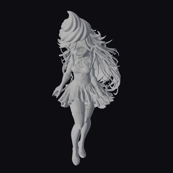 Get ready to indulge in a world of fantasy with this captivating anime girl, meticulously crafted with stylized features and a dash of playfulness. Her black dress, complete with a flared skirt and long gloves, exudes a sense of whimsy, while her ice cream cone hat adds a touch of sweetness. The vibrant orange and black hues of her hair appear to swirl around her, as if caught in a gentle breeze. With her intricate accessories and detailed textures, this model is perfect for bringing a touch of fantasy to games, print materials, VR/AR experiences, animations, or design projects.