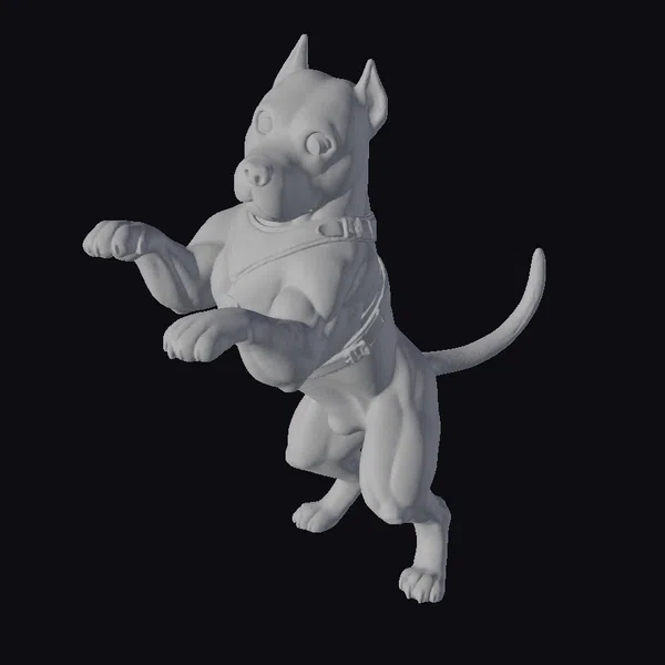 Detailed to perfection, this anime pitbull model boasts a dynamic pose, with its front paws lifted off the ground and tail curved upwards, exuding a sense of movement and energy. The blue and white fur is meticulously textured, with visible muscle definition that accentuates the dog’s athletic build. The black harness, complete with a buckle and strap, adds a functional yet stylish element to the design. This model is perfect for animators and designers seeking to infuse their projects with a lovable, cartoonish character. Whether you’re creating an animated series, a video game, or a 3D printed figurine, this anime pitbull is sure to capture hearts.