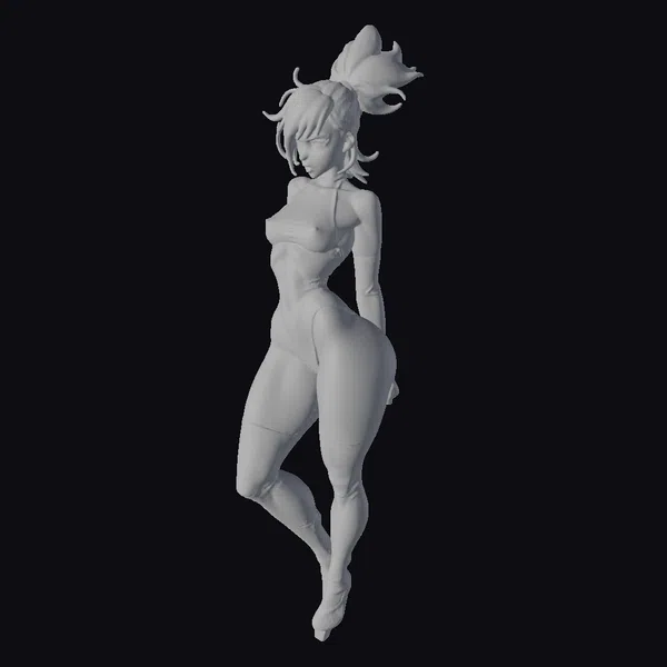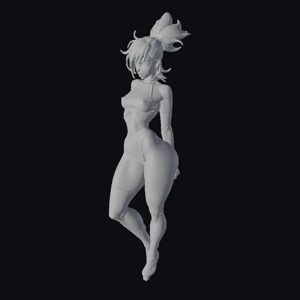 Detailed from her tousled red locks to her pointed boots, this stylized anime woman is captured in a tantalizing pose. Her outfit, a blend of a high-neck bodysuit and long gloves, is intricately textured to suggest a shiny, possibly leather-like material. The bodysuit leaves her legs and a portion of her back exposed, adding to her allure. Her facial features are defined with a slight blush on her cheeks and detailed eyelashes, contributing to her animated charm. The model’s pose, with one leg crossed over the other and her body slightly twisted, showcases her figure and the outfit’s design. This model is perfect for projects requiring a stylized, animated character, such as animations, video games, or virtual reality experiences.