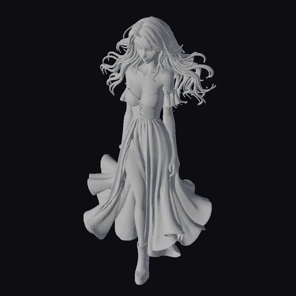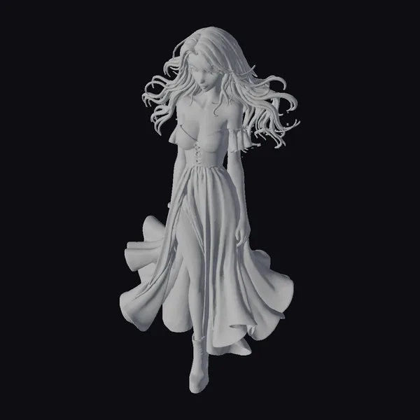 This exquisite anime-style seductress 3D model showcases a woman with vibrant pink hair cascading down her back in loose waves. She wears a daring white ensemble consisting of a strapless bra and a long, flowing skirt with a high slit, revealing her toned legs. The skirt’s fabric flows dynamically around her, suggesting movement even in a static pose. Her bare feet are adorned with a white band on one ankle, adding a touch of simplicity to her otherwise elaborate outfit. The model stands on a detailed landscape base, enhancing the overall scene. The high level of detail in the model makes it suitable for various applications, including games, 3D printing, VR/AR experiences, animation, and design projects.