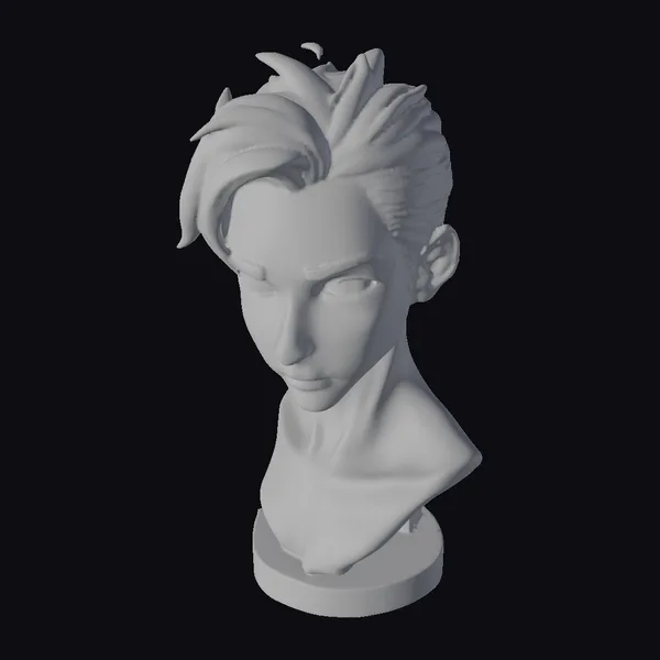 This anime-style male bust presents a captivating portrait with a dynamic pose and detailed textures. The character’s hair is styled in a spiky fashion, with strands extending upwards for added depth. His eyebrows are thick and expressive, framing eyes that seem to hold a thousand stories. The bust showcases a range of skin tones, from the pale complexion to subtle hints of color on the cheeks and lips. The base of the bust is simple yet elegant, allowing the focus to remain on the character’s face. This model is ideal for use in various applications, including game development, animation projects, virtual reality experiences, and 3D printing. Its high level of detail and realistic features make it a versatile asset for creators looking to add an anime touch to their work.