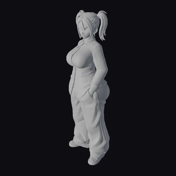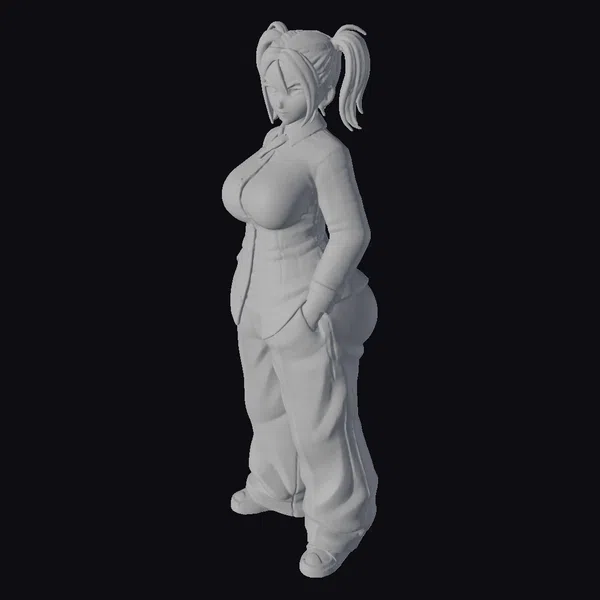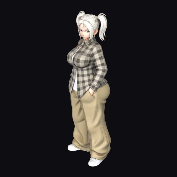 Detailed in every aspect, this anime-style woman 3D model showcases a poised individual with her hands casually tucked into her pockets. Her brown and white plaid shirt is unbuttoned at the top, revealing a white inner shirt, while her khaki pants are comfortably loose. The white shoes add a clean finish to her outfit. Her white hair, styled in pigtails, frames her face, which is adorned with tasteful makeup, emphasizing her eyes and lips. The model’s proportions are well-balanced, making her suitable for various applications, including games, animation, virtual reality (VR), augmented reality (AR), and 3D printing. Her confident stance and detailed appearance make her a versatile asset for projects requiring a stylized human character.