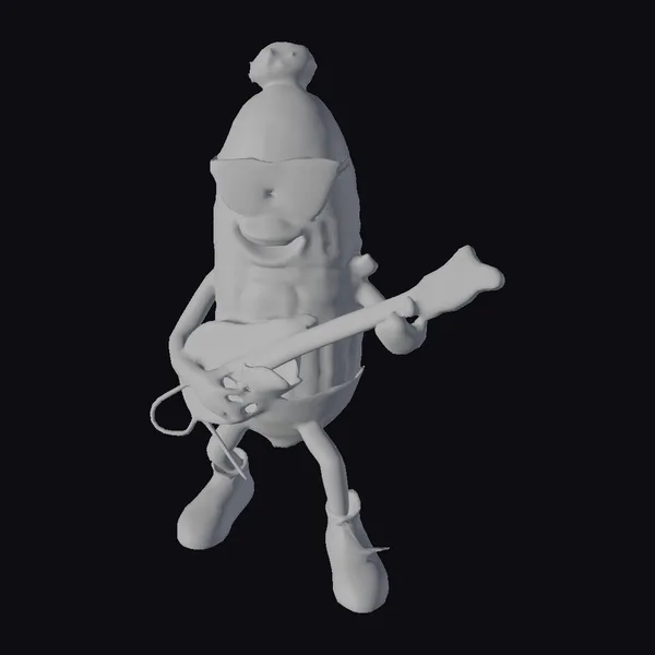 This vibrant 3D model depicts a corn character with a passion for music. The anthropomorphic corn has a bright yellow body with green accents, wearing trendy blue sunglasses and green sneakers. It holds a green electric guitar with a light-colored neck, exuding a playful and carefree vibe. The model’s pose and facial expression convey a sense of joy and enthusiasm, making it perfect for projects that require a fun and quirky character. Use it in games, animations, or designs that need a pop of personality.