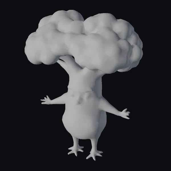 This intricately detailed model showcases an anthropomorphic tree creature in a dynamic A-pose, inviting the viewer into a world of fantasy. The creature’s body is crafted from what appears to be rough, bark-like material, complete with visible texture that mimics the natural patterns found on tree trunks. Its face, a blend of human-like features with tree-like characteristics, exudes a gentle and friendly demeanor. The crown of the creature is a lush, vibrant green, comprised of numerous small leaves that add a soft, organic appearance to the overall design. The model’s pose, with arms outstretched and legs firmly planted, suggests a welcoming or embracing stance, perfect for use in animations, games, or virtual reality experiences where a friendly, natural element is desired. Its unique blend of tree and humanoid features makes it an excellent choice for projects aiming to evoke a sense of magic or wonder.