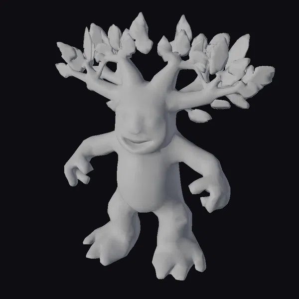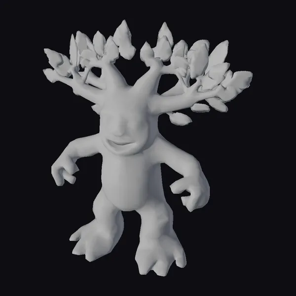 Standing in a relaxed A-pose, this intricately detailed tree creature exudes a sense of approachability and charm. The wooden texture of its body is rich with grooves and ridges, mimicking the natural bark of a tree, while its limbs are positioned in a way that suggests movement and life. The leaves on its head are a bright, lively green, contrasting beautifully with the earthy tones of its body. As the light catches its form, the subtle play of shadows accentuates the organic, natural appearance of this fantastical being. Its smiling face, complete with expressive eyes, adds an irresistible appeal, making it perfect for projects that require a friendly, mystical, or magical element. Whether you’re working on a game, animation, or design project, this tree creature is sure to inspire wonder and enchantment.