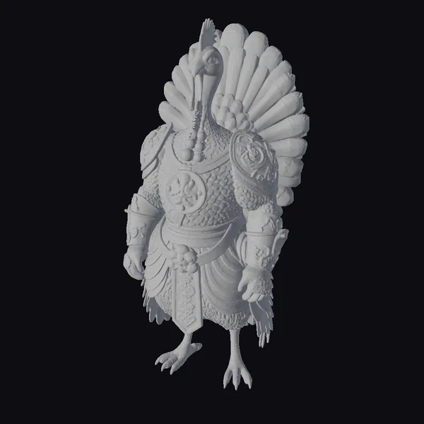 The Model “Anthropomorphic Turkey Guardian” is also available upon request in many other 3D formats, such as 3MF, BLEND, FBX, OBJ, USDZ and others, making it easy to integrate into your project.