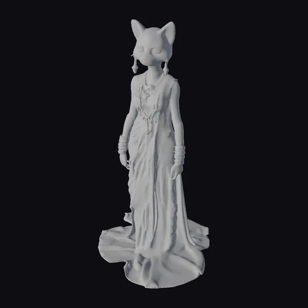 The Model “Anthropomorphic White Cat Goddess” is also available upon request in many other 3D formats, such as 3MF, BLEND, FBX, OBJ, USDZ and others, making it easy to integrate into your project.