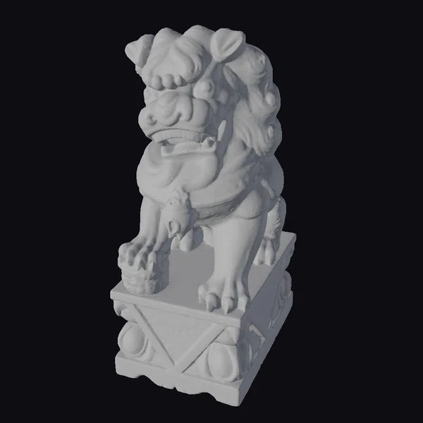 Positioned in a powerful stance, the lion’s body is rendered in exquisite detail, from the texture of its fur to the intensity of its gaze. The statue’s base is equally impressive, featuring a complex design of interconnected shapes and patterns that add to its overall sense of history. The model’s blend of gray and stone colors gives it a natural, earthy feel. Ideal for use in historical reconstructions, architectural visualizations, or as a decorative piece in its own right, this statue brings a touch of classic elegance to any setting. Its high level of detail makes it suitable for close-up shots or as a focal point in larger scenes.