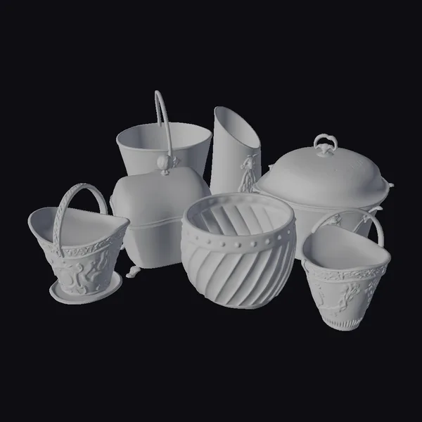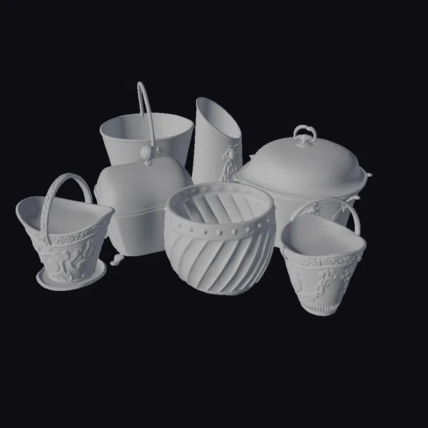 Gaze upon the intricate details of these stunning antique metal vessels, featuring a range of designs from ornate patterns to sleek, modern lines. The collection includes vessels with handles, lids, and unique textures, all showcasing a high level of craftsmanship. The metallic finish adds a touch of luxury, making these pieces perfect for adding a sense of elegance to any setting. Ideal for use in games, 3D printing, VR/AR experiences, animation, and design projects, these models are sure to impress. The detailed textures and realistic proportions ensure a high level of realism, making them suitable for a variety of applications.