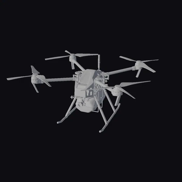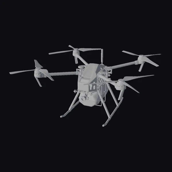 Detailed with precision, the drone’s dark gray metallic body gleams with a subtle sheen, while its multiple propellers stretch out in a dynamic pose, capturing the essence of modern engineering. A bright blue payload hangs securely underneath, adding a pop of color to the overall design. The model’s intricate details, from the camera to the landing gear, showcase a high level of realism. Ideal for use in game development, architectural visualization, or animation projects, this model brings a touch of futuristic functionality to any scene.