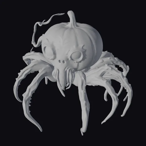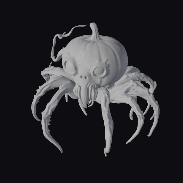 Perched atop a mass of twisted, metallic limbs, the pumpkin body of this lantern seems to leer at onlookers with its glowing, orange eyes. The stem of the pumpkin stands tall, as if defiant, while the limbs stretch out in all directions, evoking the unsettling image of a spider poised to pounce. The model’s surface is adorned with a metallic texture, lending it a sense of industrial eeriness that contrasts with the organic form of the pumpkin. The glowing eyes seem to pulse with an inner light, casting an eerie glow across the surrounding environment. This model is perfect for use in games, 3D printing, VR/AR experiences, animation, and design projects where a touch of dark fantasy is needed.