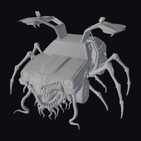 In a twisted fusion of machinery and arachnid ferocity, this model presents a detailed, rusted car body morphed with the menacing features of a spider. Eight elongated legs, akin to a spider’s, protrude from its sides, each tipped with sharp claws. The car’s front has been altered to resemble a snarling mouth filled with sharp teeth, while its headlights glow with an eerie yellow light. The texture of the model showcases a weathered, rusty exterior, suggesting it has been through a catastrophic event. Ideal for projects requiring a blend of horror and science fiction, such as animations, games, or virtual reality experiences, this model will add a unique, eye-catching element.