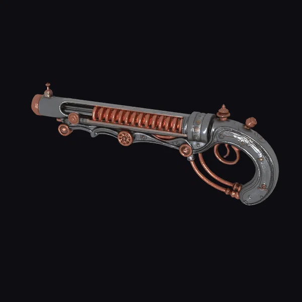 The Arcane Coilgun Ethershock Rifle is a visually striking 3D model that combines steampunk and sci-fi elements. The rifle’s body is primarily dark gray, with copper accents and a prominent coiled energy core running along its length. The handle is curved and features copper wiring, adding to the model’s industrial and futuristic feel. The rifle’s design suggests a high-tech, high-energy weapon perfect for sci-fi and fantasy settings. Its intricate details make it an ideal model for games, 3D printing, VR/AR experiences, animation, and design projects.