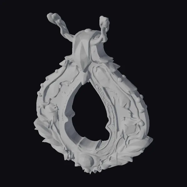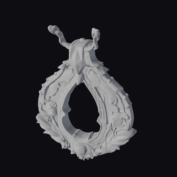This exquisite arch pendant is meticulously crafted with a focus on intricate details and a rich color palette. The pendant features a teardrop-shaped frame with a hollow center, adorned with a gradient of blue tones that transition smoothly from light to dark. The frame is embellished with purple and pink gems of various sizes, adding a pop of color and luxury. The gold accents and leaf-like patterns enhance the pendant’s ornate design. Ideal for use in games, 3D printing, VR/AR experiences, animation, and design projects, this pendant model brings a touch of fantasy and sophistication. Its high level of detail and realistic rendering make it perfect for projects requiring a premium, high-end aesthetic.