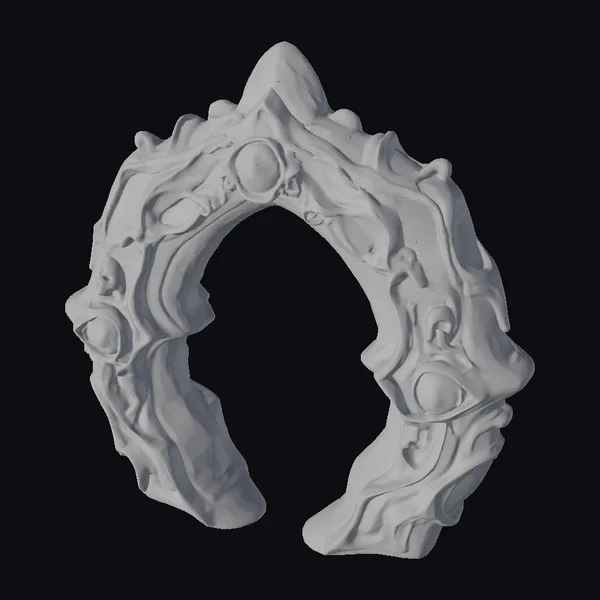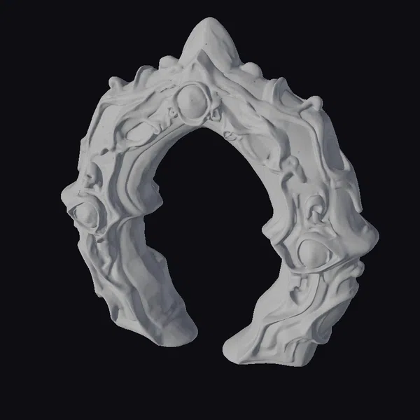 This stunning arch pendant boasts an intricate, curved design that echoes the mechanical elegance of a stone arch bridge. The pendant’s metallic surface is embellished with a series of purple gemstones, each one meticulously set to accentuate the piece’s organic curves. A soft blue glow emanates from within, casting an ethereal light on the surrounding metalwork. As a result, the pendant exudes an otherworldly charm, perfect for those who appreciate fantasy and science fiction aesthetics. Its detailed design makes it an excellent choice for 3D printing, game development, or animation projects, where realism and uniqueness are paramount.