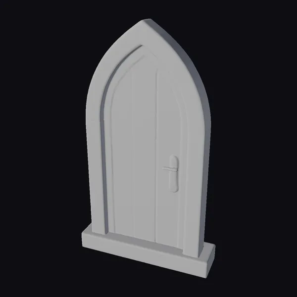 Standing tall with its pointed archway, this stunning wooden door is set within a robust stone frame, exuding an air of medieval mystique. The door itself boasts vertical wood grain details in a rich, warm brown hue, complemented by a sturdy black handle that invites the imagination to turn it and reveal what lies beyond. The stone frame, with its subtle weathering, adds a layer of realism and age to the overall piece. Whether you’re creating a fantasy world, a historical setting, or simply looking to add a touch of classic elegance to your project, this arched wooden door is sure to impress. Its detailed design makes it perfect for use in games, 3D printing, VR/AR experiences, animation, and architectural design.