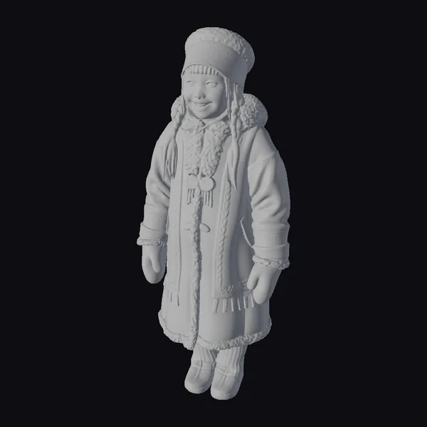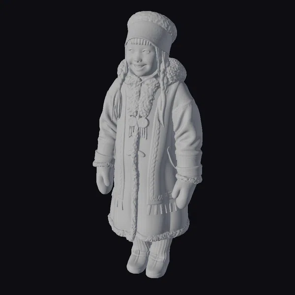 Standing tall with a gentle smile, this young child is dressed in a richly detailed, traditional Arctic fur outfit. The coat, adorned with ornate patterns and trim, is a masterpiece of cultural craftsmanship. The fur-lined hat and gloves add a touch of authenticity, while the soft, rosy cheeks and gentle expression on the child’s face bring a sense of life to the model. The boots, complete with fur trim, are the perfect finishing touch. This model is perfect for use in games, animation, or 3D printing, where a realistic and culturally-inspired character is needed. The level of detail, from the texture of the fur to the stitching on the coat, makes this model a standout.
