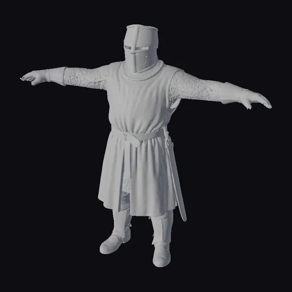 In a powerful stance with arms outstretched, this meticulously crafted 3D model of a crusader knight showcases intricate details. The knight wears a white tunic marked with a prominent red cross on the chest, complemented by a silver helmet that covers the face, gray armored sleeves, and brown boots. A brown leather belt encircles the waist, with a sword secured at the side. The model’s realistic style and detailed textures bring to life the valor and spirit of the medieval era. Ideal for use in historical animations, games, or architectural visualizations, this model adds a touch of authenticity and drama. Its high level of detail, from the weathering on the armor to the fabric of the tunic, makes it a versatile asset for various projects.