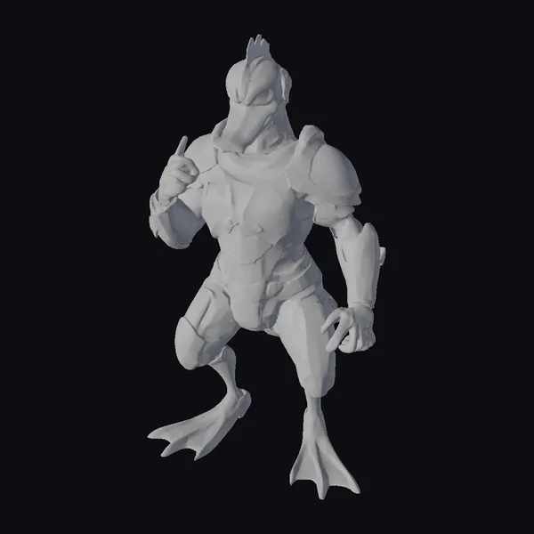 Detailed with precision, this stylized armored duck character boasts an intricate metallic armor set, complete with advanced details and a distinctive orange beak and feet. The armor’s sleek design and the character’s dynamic stance evoke a sense of high-tech prowess and readiness for action. The model’s unique blend of organic and synthetic elements makes it an excellent choice for projects requiring a futuristic or sci-fi edge, such as games, animations, or virtual reality experiences. Its detailed textures and realistic proportions ensure it will integrate seamlessly into a variety of digital environments.