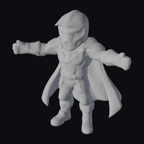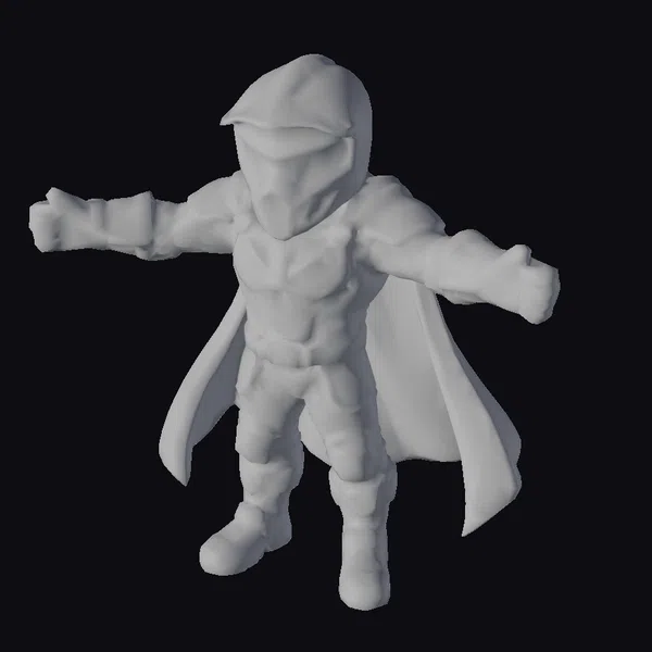Detailed with precision, this stylized armored figure boasts a sleek black and gold armor set, complete with a bold red cape flowing behind. The hero’s mask glints with a hint of gold, adding to the mystique. With arms outstretched, the guardian appears poised for action, embodying courage and strength. Ideal for projects requiring a heroic presence, such as animations, games, or virtual reality experiences.