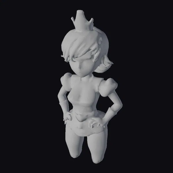 Detailed with precision, this stylized 3D model of an armored royal princess showcases intricate textures and a heroic pose. The silver armor, adorned with gold accents, shines brightly, while the golden crown atop her brown hair adds a touch of royalty. Her confident stance, with hands on hips, invites you into a realm of fantasy and adventure. Perfect for games, animation, or design projects, this model brings a unique blend of strength and elegance. The stylized approach offers a balance of realism and artistic flair, making it versatile for various creative endeavors.