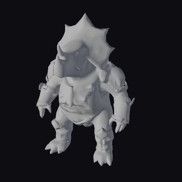Standing tall with an imposing stance, this triceratops knight boasts a detailed metallic armor set that covers its body, leaving only its face, frill, and claws exposed. The armor’s design is reminiscent of medieval times, with a breastplate, shoulder guards, and greaves protecting its vulnerable areas. The triceratops’s own features, such as its frill and horns, are not armored, highlighting their natural protective functions. Its arms, long and human-like, are encased in armor, ending in sharp, claw-like nails. This model is perfect for projects requiring a blend of fantasy and medieval elements, suitable for games, 3D printing, VR/AR experiences, animation, and design projects.