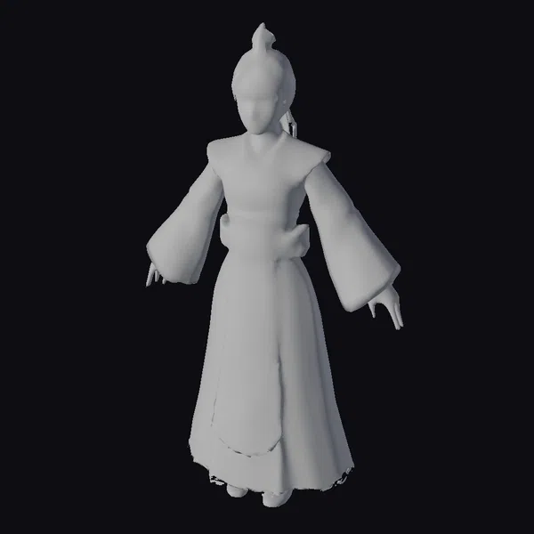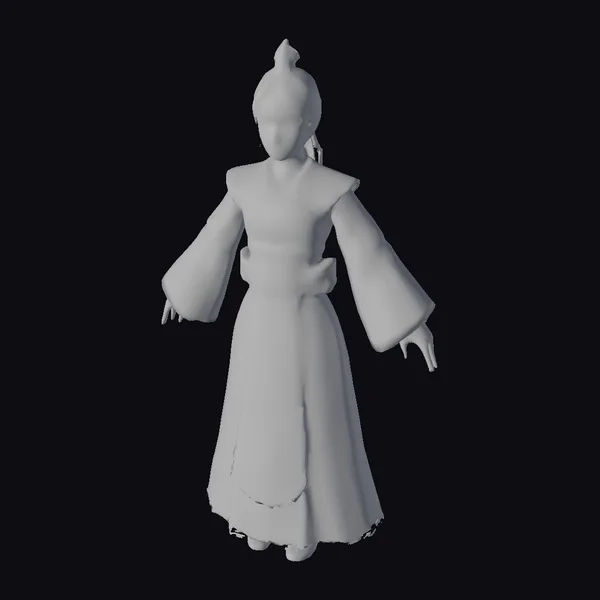 Standing tall with her arms outstretched, the Empress’s gray robe with gold polka dots seems to shimmer in the light. The dress’s V-neck and wide, flowing sleeves are accentuated by gold trim, while a matching belt cinches at her waist. A golden ornament crowns her dark hair, styled in a neat updo. This 3D model showcases exquisite detail, from the texture of the robe to the delicate features of her face. Ideal for use in historical or fantasy settings, this model is perfect for games, animation, or 3D printing. The Empress’s serene expression and poised stance command attention, making her a compelling addition to any project.