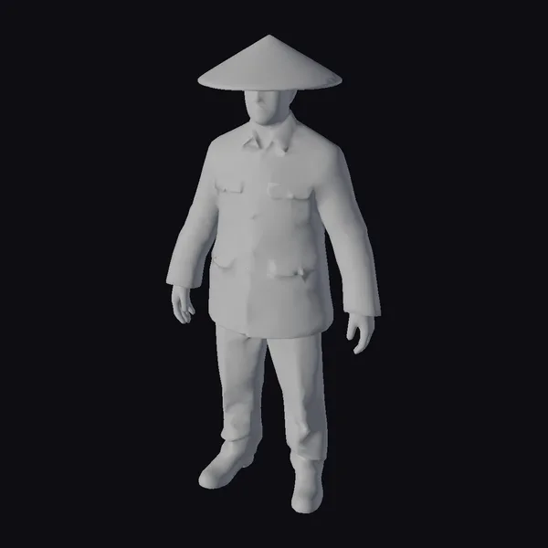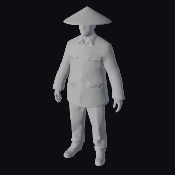 The Model “Asian Farmer with Conical Hat” is also available upon request in many other 3D formats, such as 3MF, BLEND, FBX, OBJ, USDZ and others, making it easy to integrate into your project.