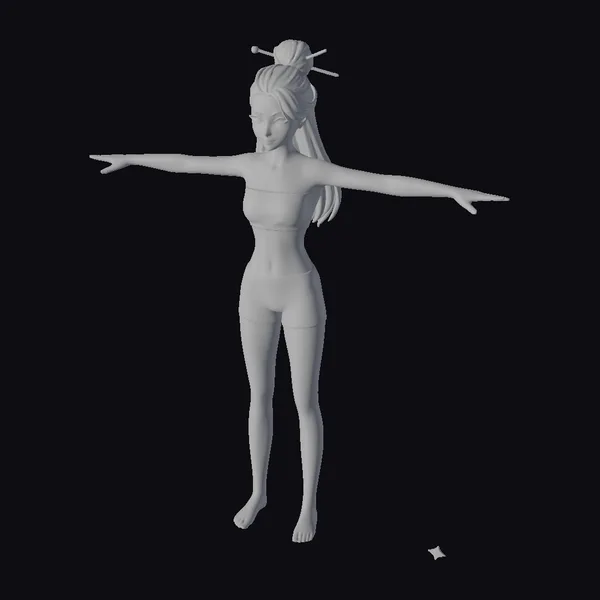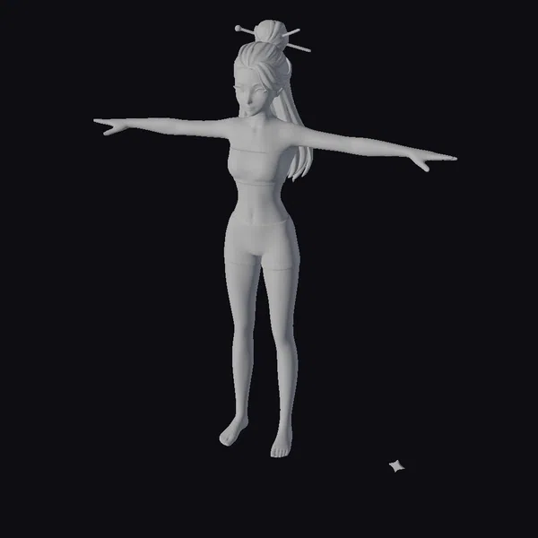 In a majestic pose that embodies both strength and serenity, this stylized 3D model of an Asian woman showcases a perfect blend of form and function. Her dark hair is meticulously styled in a high bun, adorned with two wooden sticks that add a touch of cultural elegance. The model wears a gray sports bra and shorts, highlighting her toned physique. Her arms are outstretched, and her bare feet are planted firmly on the ground, capturing a moment of poised equilibrium. This model is ideal for projects requiring a character that exudes calmness and focus, such as animations, games, or virtual reality experiences. The detailed textures and realistic proportions ensure a lifelike appearance, making it suitable for a wide range of applications, from design and visualization to entertainment.