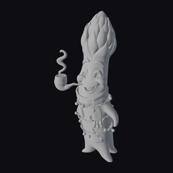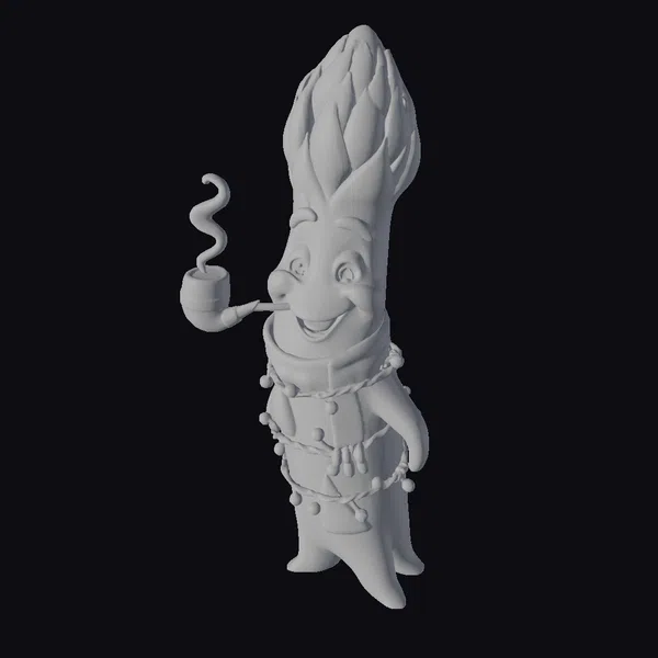 Standing tall with a bright green hue, this charming asparagus model is dressed in a red and white scarf and adorned with colorful Christmas lights. Its smile and posture convey a friendly demeanor, while the pipe adds a whimsical touch. The model’s cartoon style makes it perfect for projects requiring a lighthearted, festive feel. Ideal for use in animations, games, or as a decorative element in designs, this model is sure to bring a smile. Its detailed features, from the texture of the asparagus to the glow of the lights, make it a delightful addition to any project.