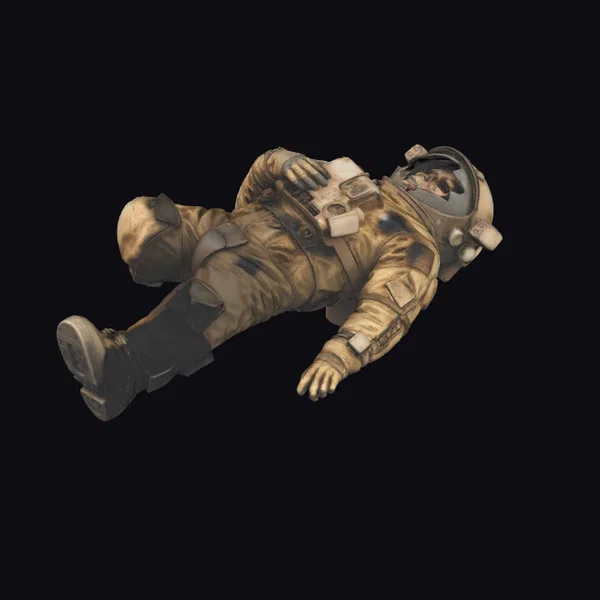 In a majestic pose, the astronaut floats with one arm outstretched and the other resting on a control panel on their chest. The space suit is a masterpiece of realistic design, with a worn, textured appearance that suggests a deep space mission. The golden hue of the suit shines brightly, with darker accents adding depth and dimension. The astronaut’s helmet, complete with a reflective visor, adds to the overall sense of realism. This 3D model is perfect for sci-fi games, animations, or designs looking for a touch of space exploration drama.