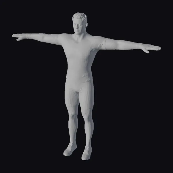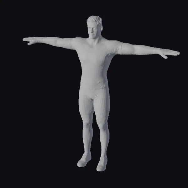 In a powerful T-pose, this 3D model of an athletic male showcases a well-defined physique, ideal for various applications in game development, animation, virtual reality, and design. The model is dressed in a form-fitting gray T-shirt that highlights his muscular build, along with black shorts and shoes that complete his sporty look. The attention to detail is evident in his short hair and the subtle shine on his clothing, suggesting a readiness for action. The realistic style ensures that the model can seamlessly integrate into environments requiring a human element, from fitness and sports scenes to more dramatic or narrative contexts. The model’s pose allows for easy modification and customization, making it a versatile asset for creators.