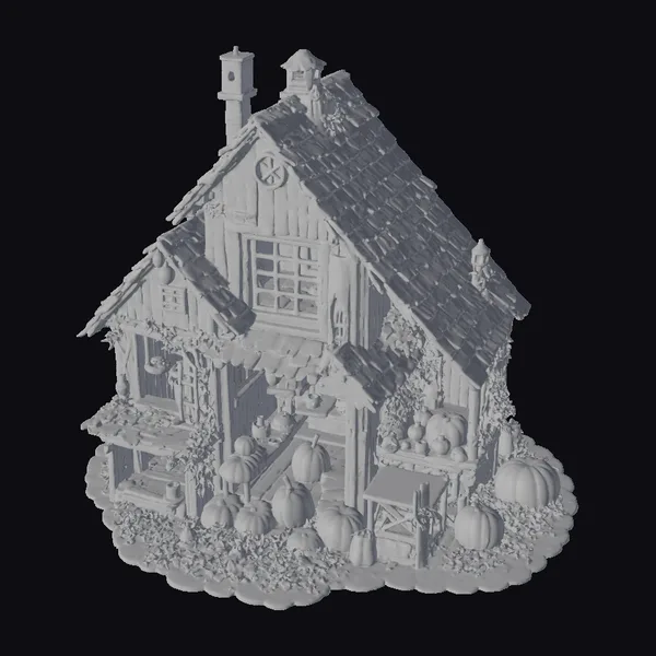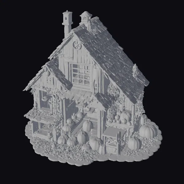 Perched atop a bed of crunchy leaves and surrounded by an array of glowing pumpkins, the autumn cottage stands as a testament to seasonal whimsy. The steeply pitched roof, adorned with moss and autumnal foliage, appears to be weathered to perfection, with each wooden plank telling a story of seasons past. A delicate balance of warm lighting and rich textures – from the rough-hewn wood to the smooth, rounded pumpkins – creates a captivating scene. Ideal for use in games, animations, or virtual reality experiences, this model transports viewers to a cozy autumnal world. Its intricate details and festive charm make it perfect for designers seeking to infuse their projects with the magic of the season.