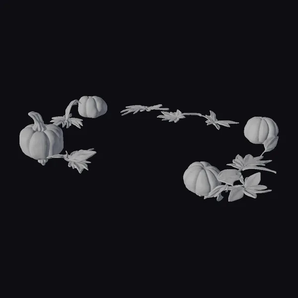Elevate your seasonal decor with this beautifully crafted arrangement of small pumpkins and autumn leaves. The setup includes several small to medium-sized pumpkins in varying orientations, each with a glossy finish and detailed texture, accompanied by clusters of red and orange leaves that add a pop of color and freshness. The stems are thin and flexible, allowing for dynamic posing. This decoration is perfect for adding a touch of fall festivity to games, animations, VR/AR experiences, or 3D designs. Its minimalist yet evocative design makes it versatile for various applications.