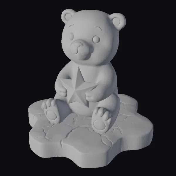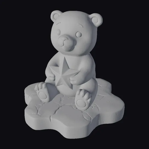 This delightful baby polar bear figurine is meticulously detailed, from the subtle cracks on the ice block it sits upon to the reflective sheen on its porcelain surface. The bear’s pose, with legs stretched out and a gold star held closely, conveys a sense of innocence and delight. Its facial features, including small eyes, a black nose, and a gentle smile, enhance its adorable appeal. The contrast between the icy blue of the bear and the ice block, and the warm gold of the star, creates a visually appealing combination. Ideal for use in games, 3D printing, virtual reality, animation, and design projects, this model is sure to add a touch of whimsy and charm.