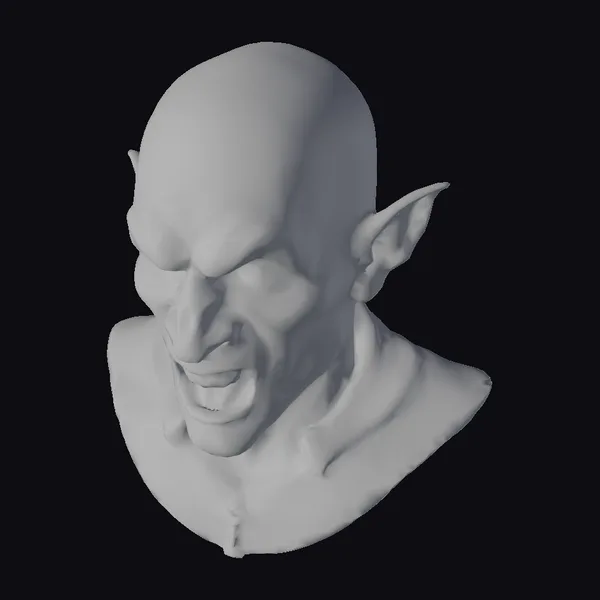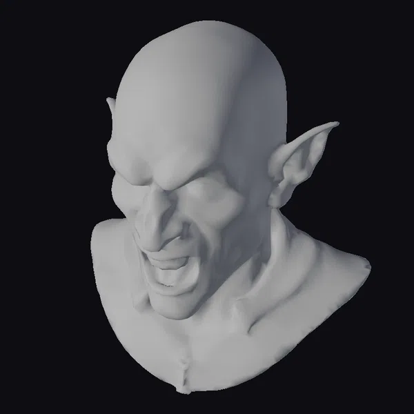 Gaze into the menacing face of this bald evil creature, its sharp teeth and pointed ears exuding a sense of dark fantasy and horror. The realistic style and attention to detail make this model a standout in any 3D design or art project.