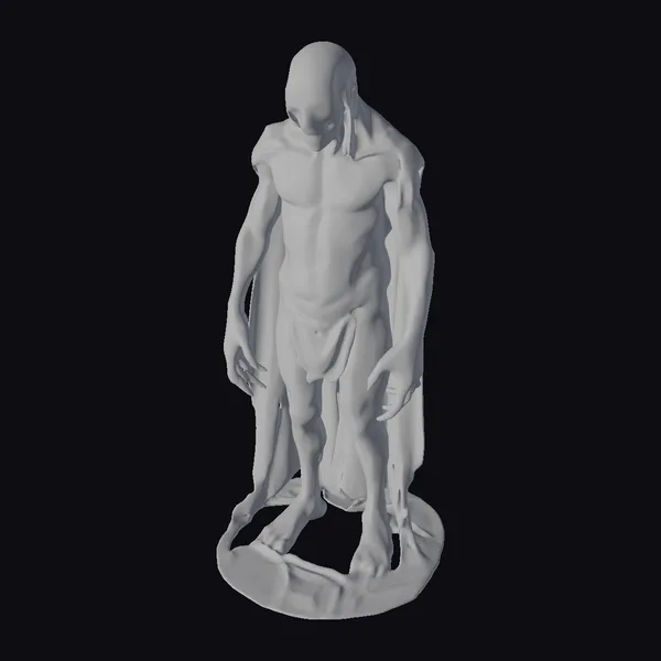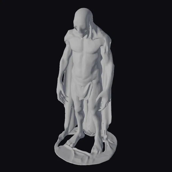 Standing tall with an imposing presence, this bald, humanoid creature is draped in a flowing cape that seems to move of its own accord. The figure’s muscular yet gaunt physique is accentuated by the stark contrast of light and shadow, highlighting the eerie atmosphere that surrounds it. The absence of hair and the sharp features of the face contribute to its otherworldly appearance, suggesting a being from a realm beyond our own. The quality of the model is evident in the intricate details, from the texture of the skin to the flow of the cape, making it an excellent choice for projects that demand a high level of realism and emotional impact. Ideal for use in games, animations, or as a design element, this model is sure to add depth and intrigue to any dark fantasy or horror-themed project.