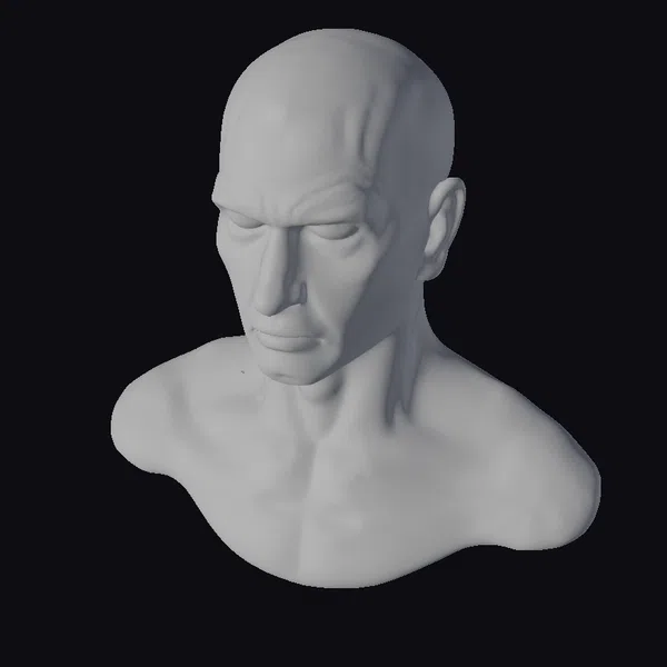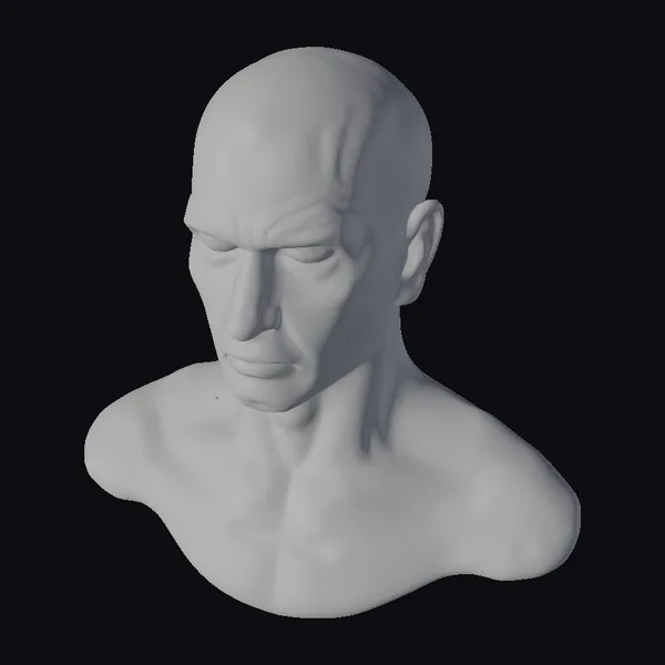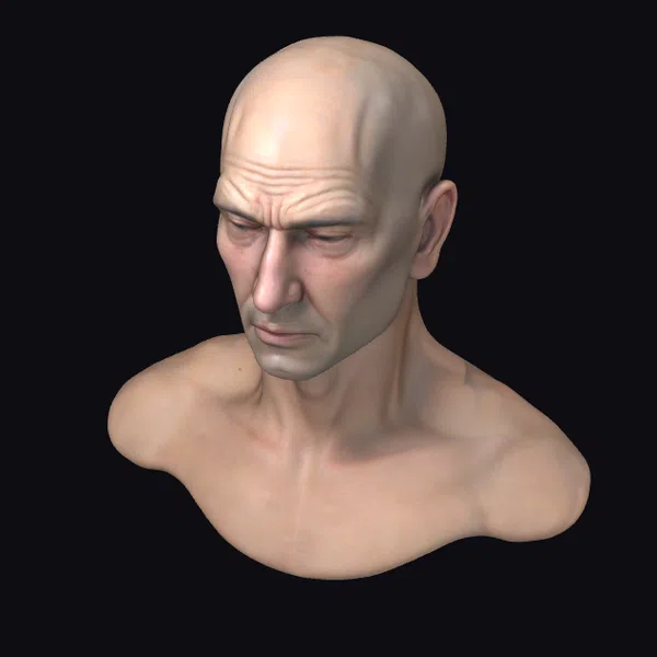 This stunning bust showcases a bald man with a stern, focused expression, captured in a cinematic close-up. The model’s skin texture boasts natural pores and fine wrinkles, particularly around the forehead, lending an air of authenticity. The absence of hair accentuates the defined muscles of the neck and shoulders. Crafted with 8K PBR textures, this model is optimized for high-fidelity rendering, making it perfect for applications in film, video games, virtual reality, and architectural visualization. The level of detail ensures that it can be used for character design, animation projects, or as a reference for artists.