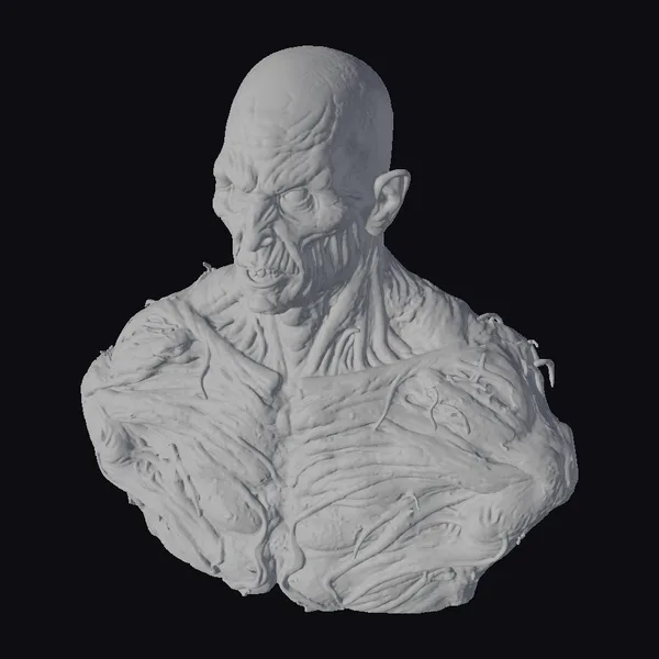 The Model “Bald Zombie Torso Bust” is also available upon request in many other 3D formats, such as 3MF, BLEND, FBX, OBJ, USDZ and others, making it easy to integrate into your project.
