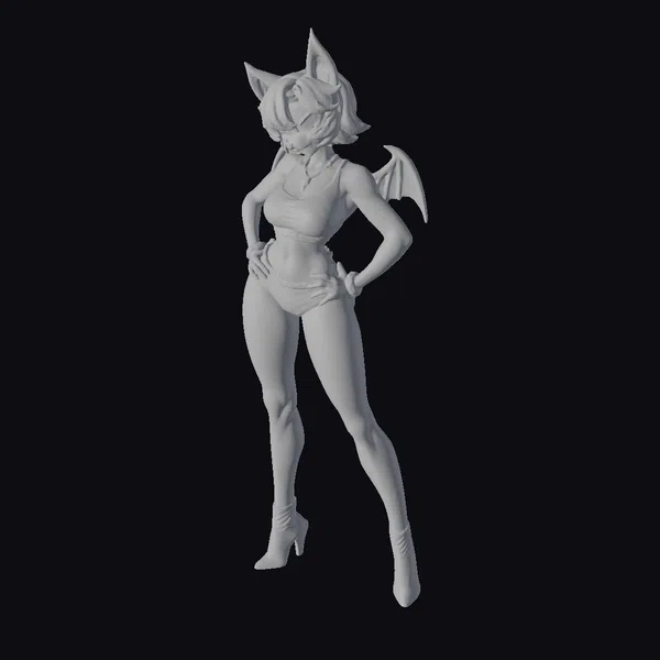 Detailed with meticulous care, this character model showcases a vibrant cartoon aesthetic. Her pose, with hands on hips and legs poised dynamically, exudes a sense of sassiness and playfulness. The model features striking details such as white hair, blue eyes, and prominent bat ears and wings. Textures and lighting are finely tuned to bring out a lively and engaging character. Ideal for use in animations, games, or as a unique design element, this model is sure to capture attention. Her design lends itself well to various creative projects, from digital art to 3D printing.