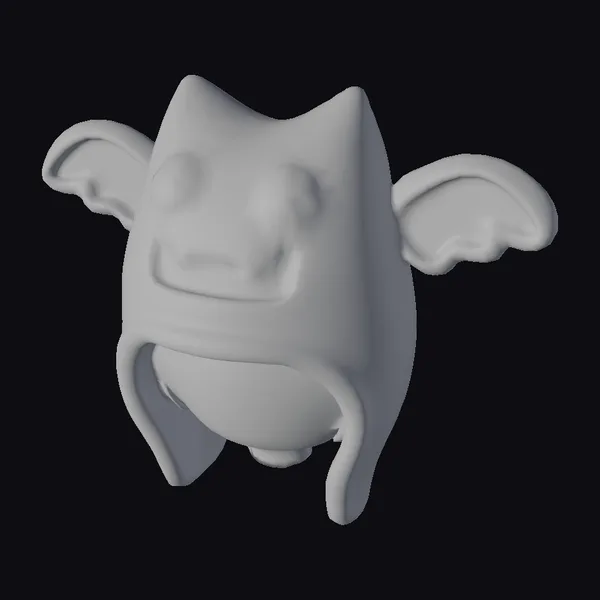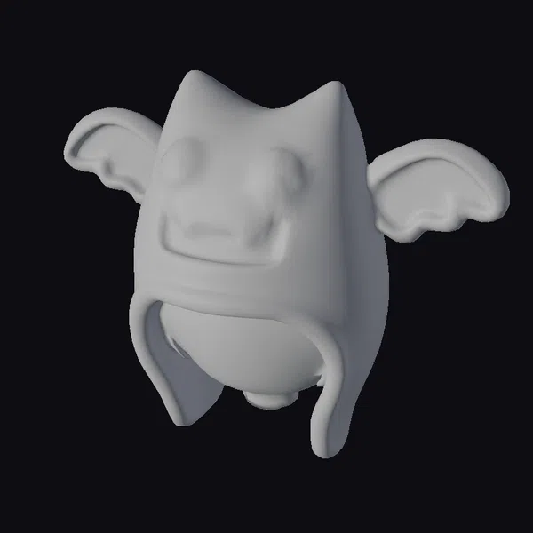 Perched atop your head, this whimsical bat hat commands attention with its vibrant purple hue and exaggerated features. The open mouth reveals a dark interior, while the stitched-up eyes add a touch of eerie whimsy. Crafted with meticulous detail, the bat’s ears protrude on either side, adding a playful flair. This hat is perfect for those who revel in the spooky season or simply love quirky fashion statements. Its unique design makes it an excellent addition to games, 3D print projects, VR/AR experiences, animations, or graphic design projects seeking a dash of the bizarre.