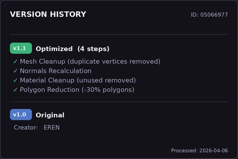 Further optimized in this latest version 1.1, this Very High Poly Premium 3D model is available immediately in GLB and STL file formats and can be purchased with licenses for both personal and commercial use.