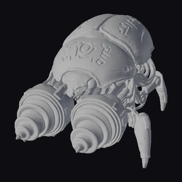 Crafted with meticulous attention to detail, this Sci-Fi beetle drill model showcases a mesmerizing blend of organic and mechanical elements. The bone-white shell, reminiscent of a beetle’s exoskeleton, features a subtle iridescence that shimmers with a soft, ethereal glow. Faded emerald scars and mysterious green symbols add a sense of history and mystique to the creature’s design. Two large black and pink drill bits protrude from the front, lending an air of industrial functionality to the otherwise fantastical creature. As the drill appears to burrow through the depths, its chitin-like texture and mechanical limbs evoke a sense of futuristic exploration. This model is perfect for use in sci-fi games, animations, or 3D printing projects that require a unique blend of technology and nature.