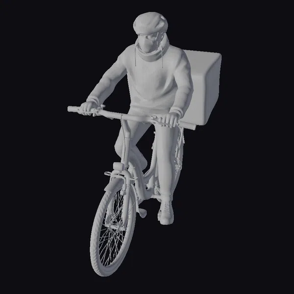 The Model “Bicycle Delivery Rider” is also available upon request in many other 3D formats, such as 3MF, BLEND, FBX, OBJ, USDZ and others, making it easy to integrate into your project.