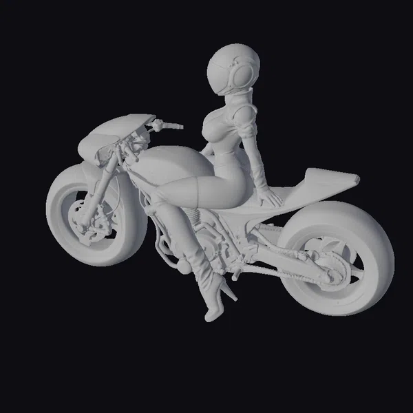 The Model “Biker Girl on Motorcycle” is also available upon request in many other 3D formats, such as 3MF, BLEND, FBX, OBJ, USDZ and others, making it easy to integrate into your project.