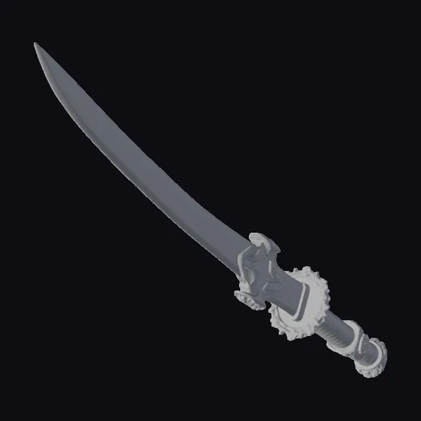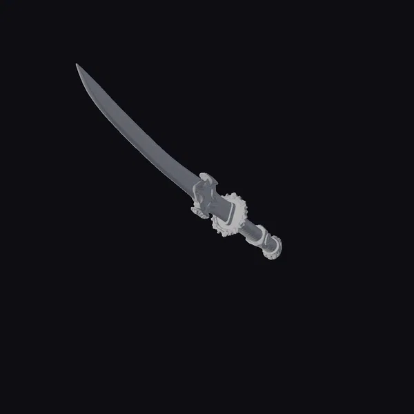 This striking, bioluminescent katana appears to have been plucked straight from the darkest depths of the ocean. Its curved, single-edge blade glows with a soft, ethereal light, as if infused with the bioluminescent properties of some deep-sea creature. The hilt and pommel are intricately detailed, with a warm, golden light emanating from within, while the guard is shaped like a snarling, organic growth. The overall effect is one of dark, mystical power, as if this sword has been imbued with the very essence of the abyss. Perfect for use in games, animation, or 3D printing, this model is sure to add a touch of eerie elegance to any project.